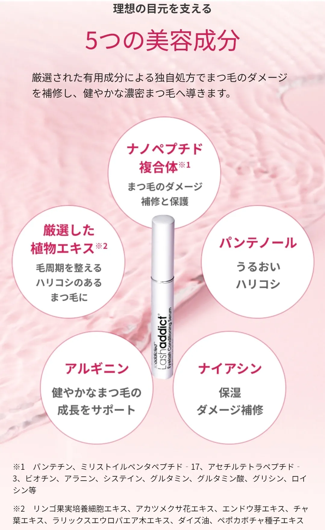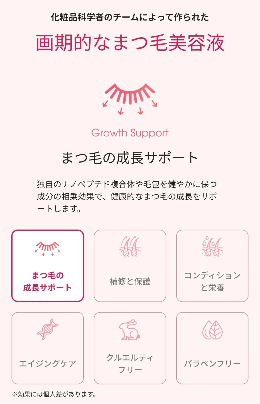 毎晩サッとひと塗りで、ナノペプチドを中心とした成分がまつ毛を健やかに導くようサポート。