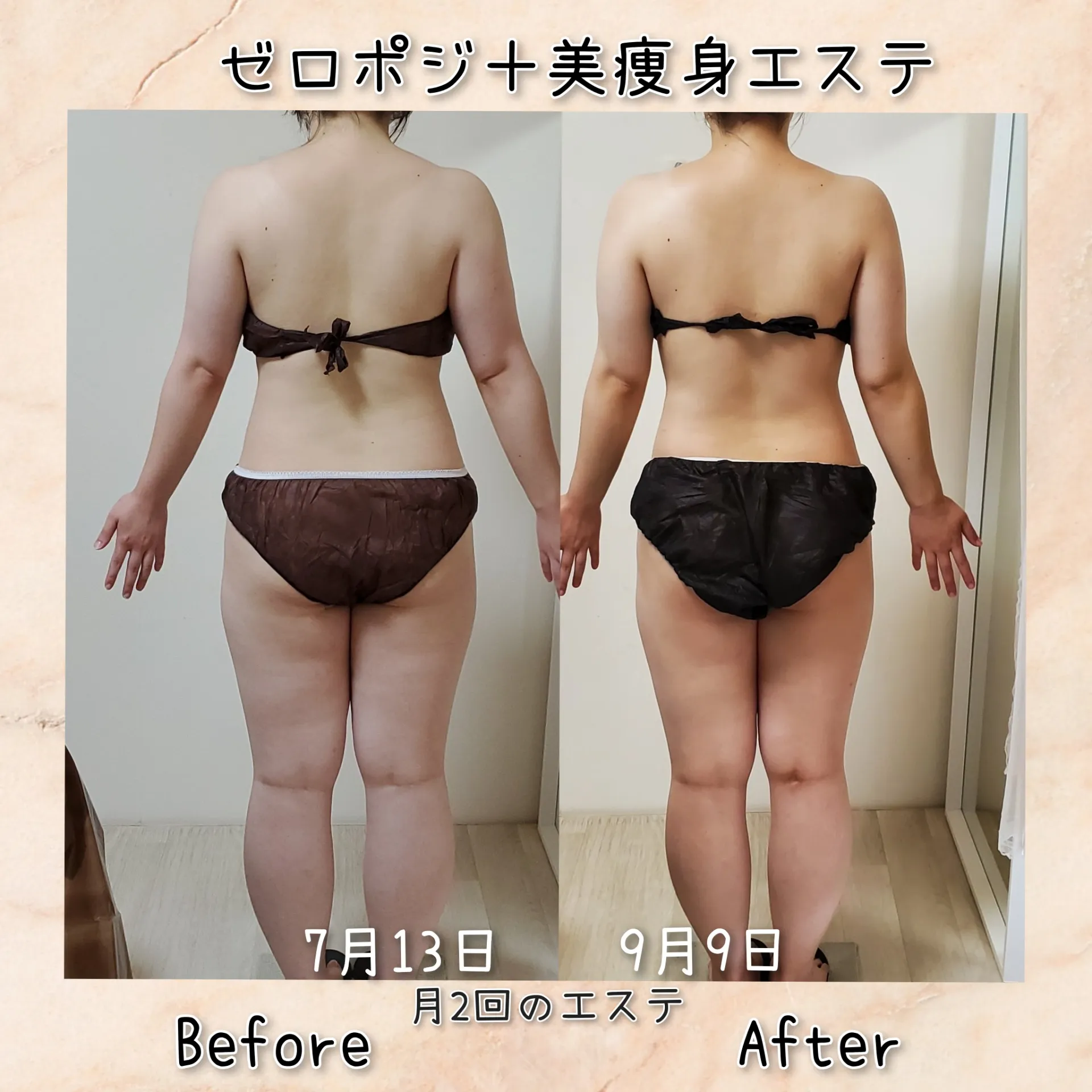 背中の広がり・骨盤の開き・太ももの外ハリが徐々に解消され、ラインが自然と引き締まりました✨